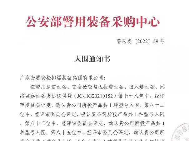 近日,在公安部警用裝備采購中心警用通信設備、安全檢查監(jiān)視報警設備、出入境設備、網(wǎng)絡監(jiān)察設備類協(xié)議供貨公開遴選項目中,廣東安盾安檢排爆裝備集團有限公司研發(fā)的X射線安全檢查設備、安檢門...